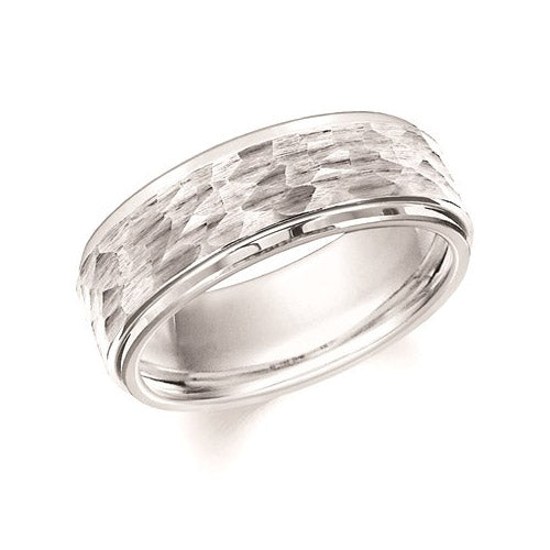 8mm Tungsten carbide Step Edge Comfort Fit band with center hammered texture