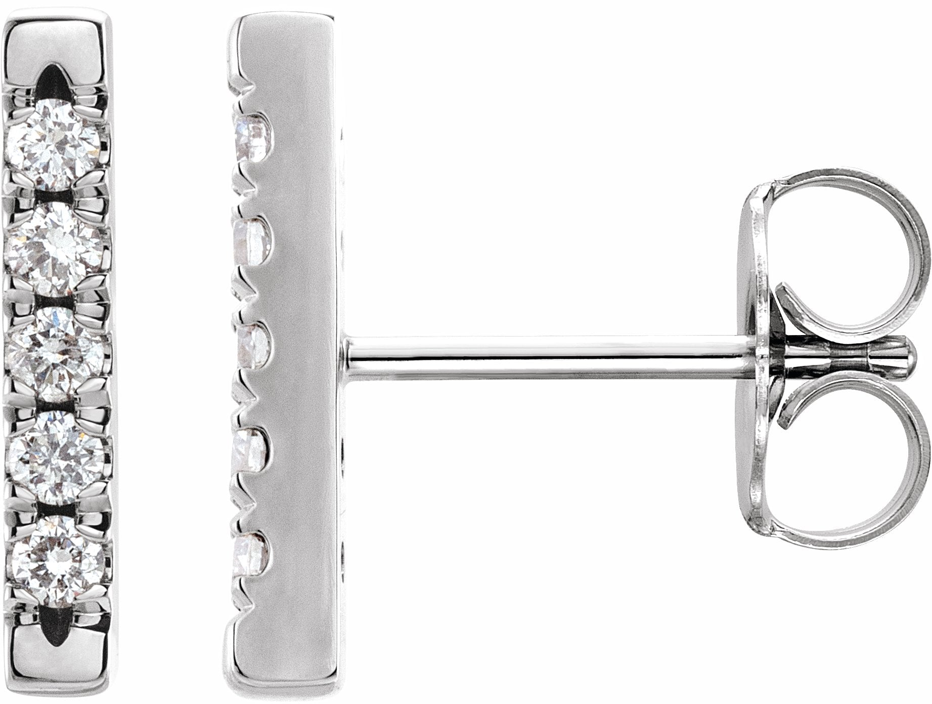 87066 / Set / Diamond / Pair / 11.2 Mm :: 1/8 Ctw / Platinum / Si2-Si3, G-H / Friction Backs Included / Polished / 1/8 Ctw French-Set Diamond Bar Earrings