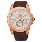 Seiko Le Grand Sport Kinetic Men's Watch features 41.5mm Leather Strap diameter, Sapphire crystal, Rose Gold Finish, Cabochon crown, Time relay system preserves accurate time up to 4 years, Perpetual calendar adjusts for odd and even months including Febr