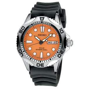X Prospex Solar Men Watch powered by light energy features pressure vented polyurethane strap, 10-month power reserve once fully charged, day/date calendar, screwdown crown and caseback, one way rotating elapsed timing bezel, water resistant up to 200m.