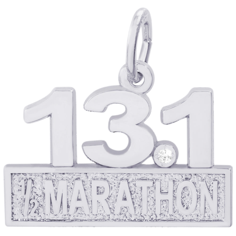 Sterling Silver Marathon 13.1 w/White Spinel Charm